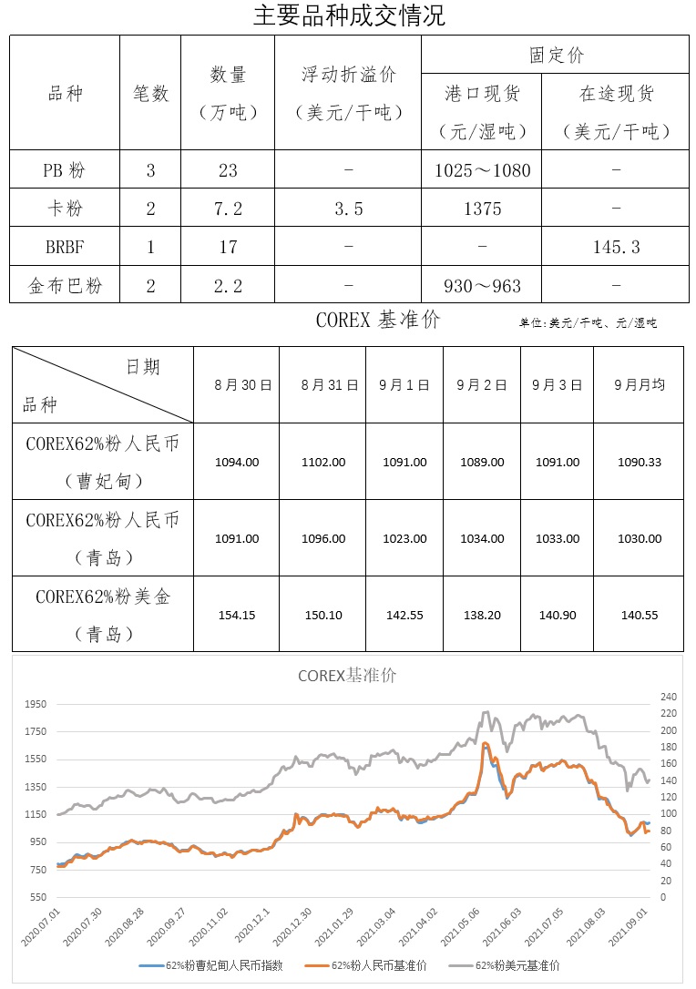 8月30日-9月3日成交9筆共51.73萬噸,其中在途2筆22.2萬噸,港口7筆29.53萬噸。